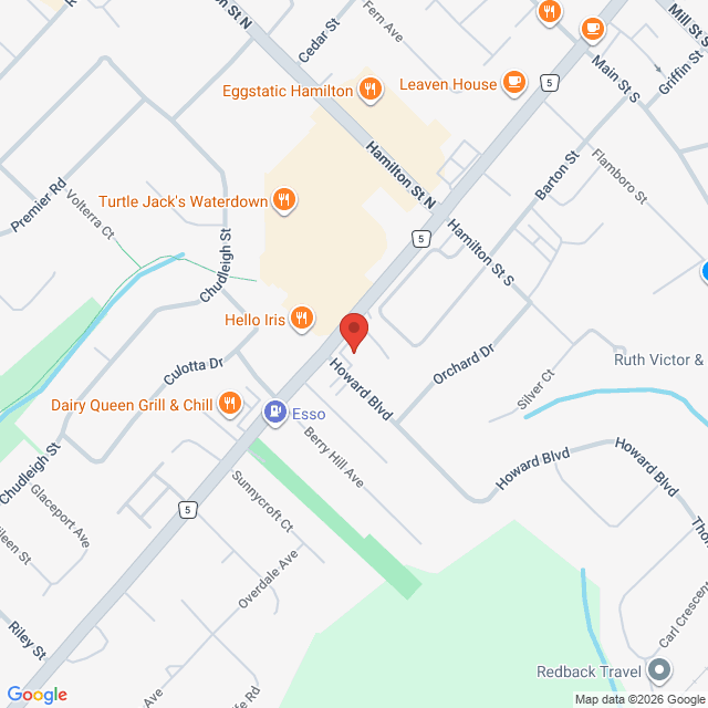 Our Waterdown location is located at 250 Dundas Street East in the green building, on the corner of Dundas & Howard Blvd. Our front door faces Howard. We have lots of free parking on-site. If you have any questions please give us a call 905 690 9151. See you soon!